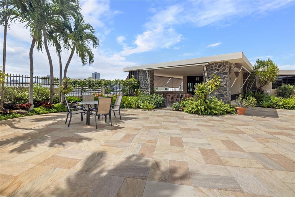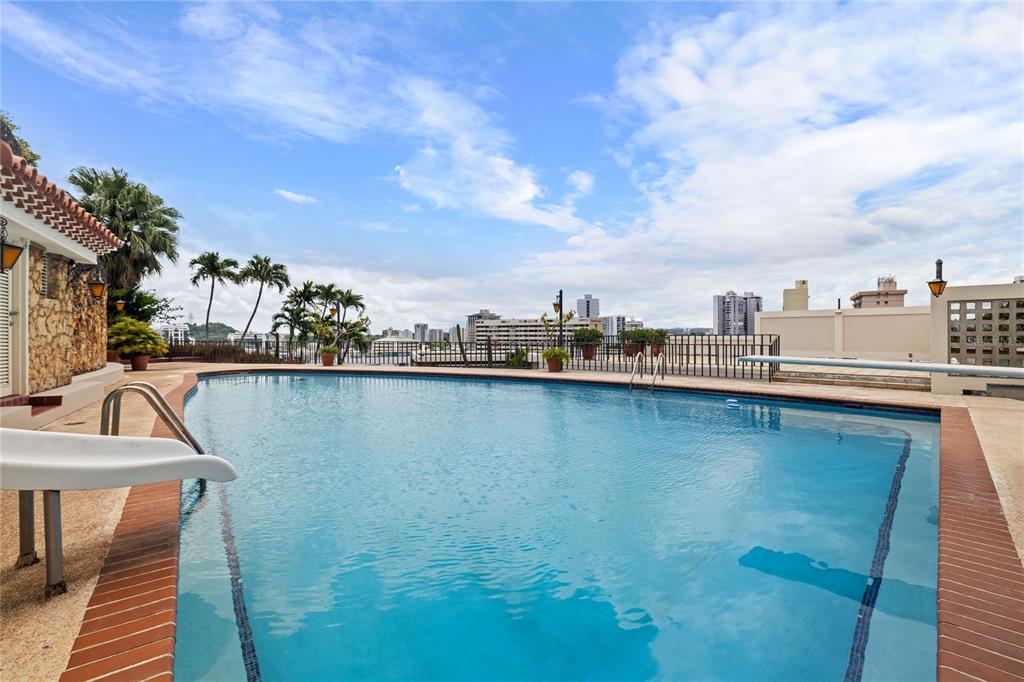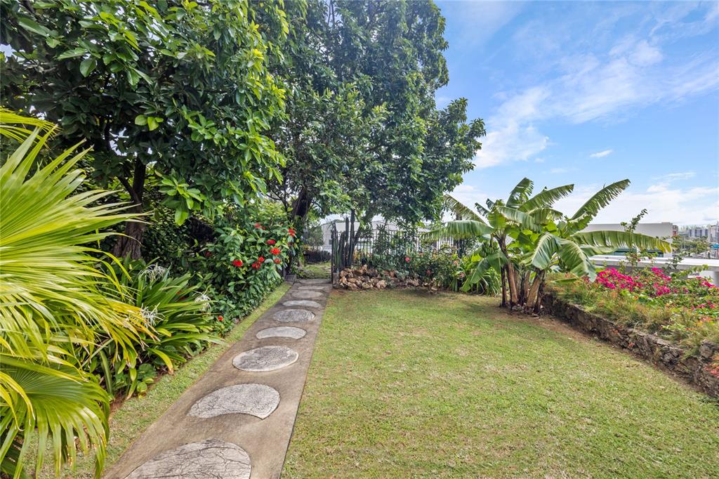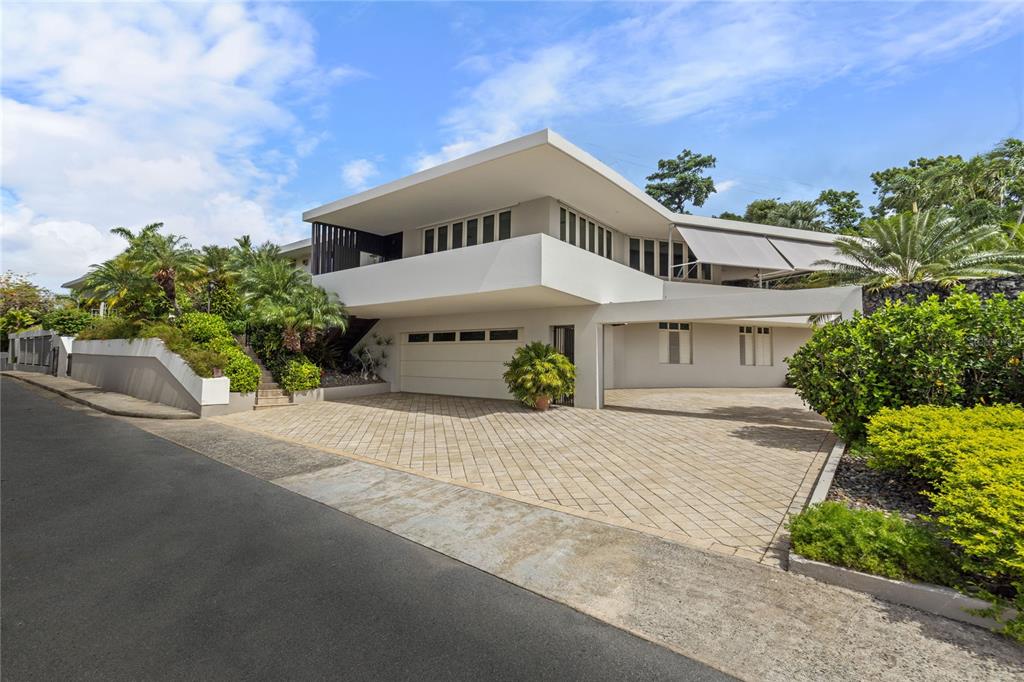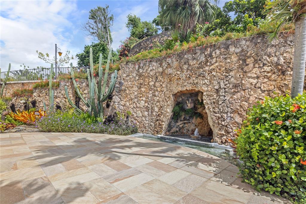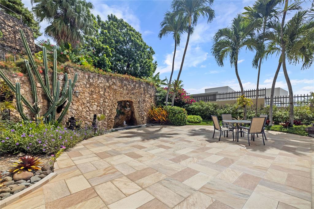 Experience serenity in this elegant home, perched on a small hill in Villa Caparra, Guaynabo, offering stunning city views of Guaynabo and San Juan. Enjoy the privacy of this residence and the refreshing breeze from the trade winds. Located in a gated and secure community with easy access through multiple entry points, this house is an ideal retreat. The property features a beautiful terrace overlooking a patio with a stone-covered wall, where all stones have been reclaimed from the original construction. The garden includes a charming fountain, several fruit trees, and a swimming pool area complete with a full bathroom. Inside, the home boasts pristine terrazzo floors with bronze inlays, high ceilings, and large windows that bathe the space in natural light. The spacious kitchen offers a view of the patio and is accompanied by a separate laundry room and maid’s quarters. Among the seven bedrooms and six bathrooms, a separate level includes a bedroom that could serve as a guest room, plus an office. The house encompasses 3,991 square feet of living space and sits on 1,993 square meters of land. Full back up 30 kilos generator, water tank, solar water heater and much more completes this classic and special house.
